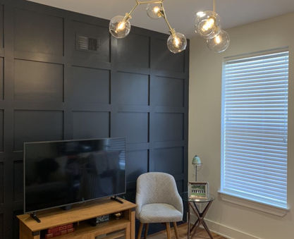 This project was completed with the aim of modernizing the home. When purchased, our customer described the property as a blank canvas needing artistic direction. Lapstone recommended and installed statement pieces like coffered and shiplap walls along with updating kitchen cabinets, painting, and flooring throughout. Our design team helped the customer decorate with intricate lighting pieces and art. Mechanical applications were also fixed/installed such as sump pump battery back-up and sealing and capping the entire home from exterior elements.